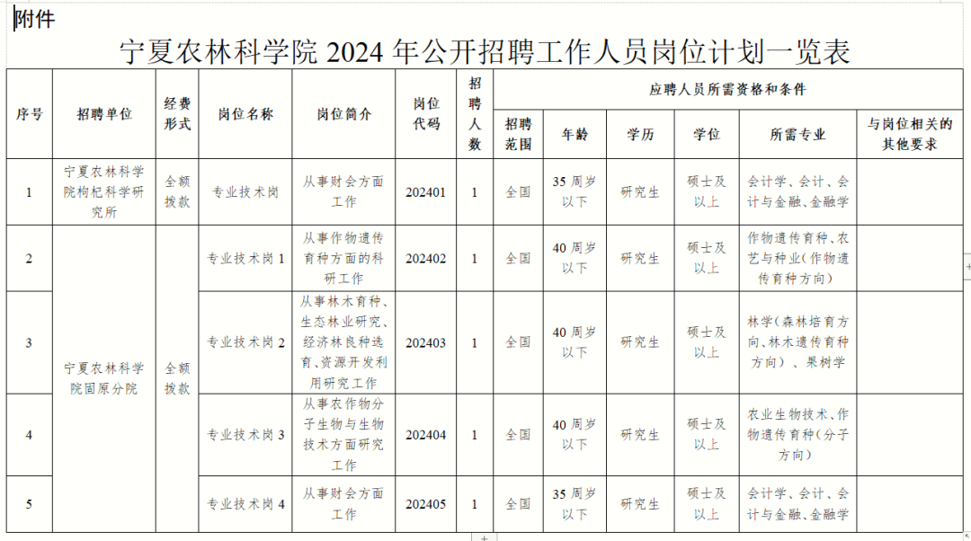 6.符合《宁夏农林科学院2024年公开招聘工作人员岗位计划一览表》(见附件)中各招聘岗位要求的相关资格条件;
